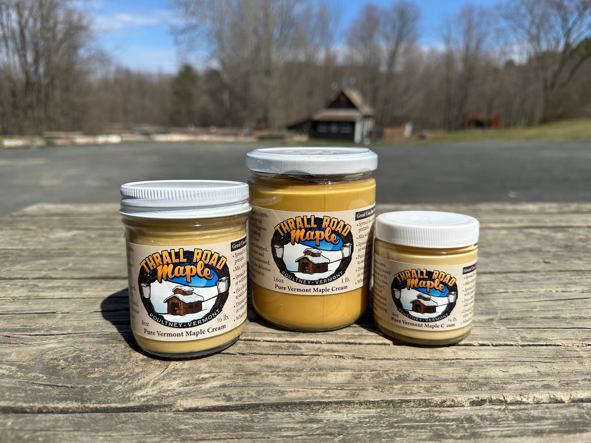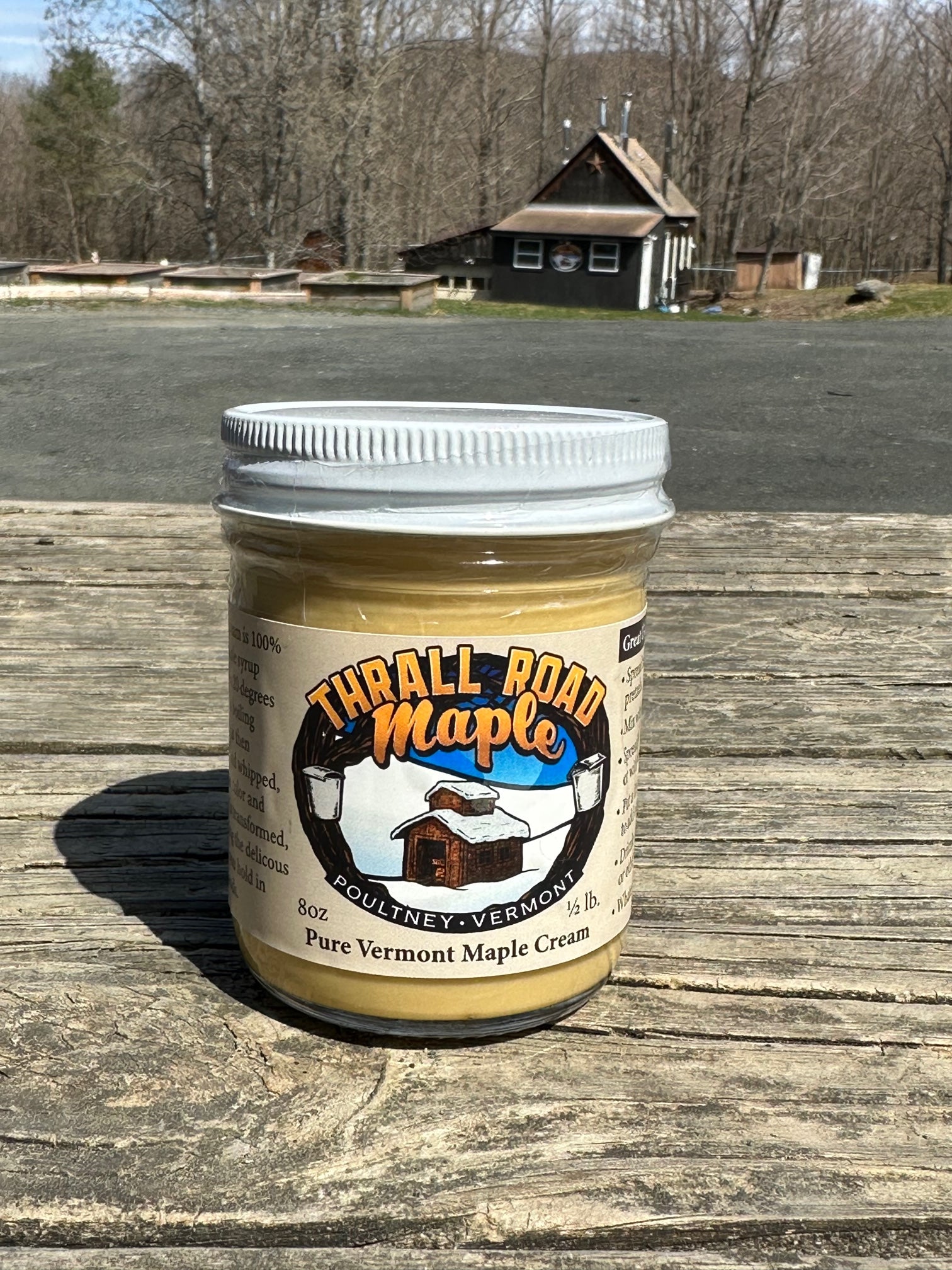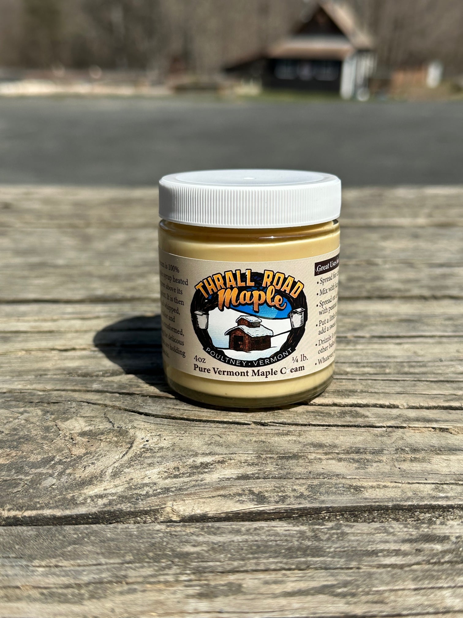 Maple cream is 100% pure maple syrup heated to 20 degrees above its boiling point. It is then chilled and whipped, until the color and texture is transformed, becoming a delicious spread.